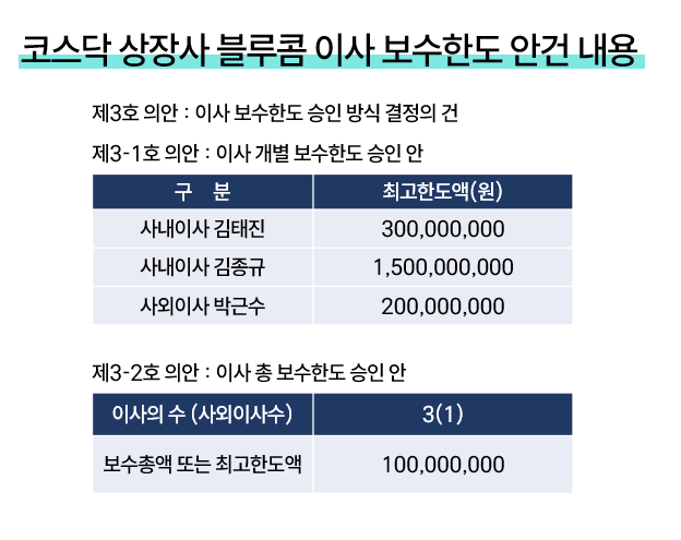 일부 코스닥 상장사는 다양한 변칙 수단을 마련하곤 한다. 이사 보수한도 총액을 승인하기보다 개별 이사 보수를 정하는 식이다. 이 경우 해당 이사 외 주주인 이사 의결권 행사가 가능하다. 블루콤의 경우 최대주주 1인에게 지배력이 집중돼 있음에도 불구하고 이 방식으로 이사 보수 관련 안건을 모두 통과시켰다. 정관에 보수 규정 준수 조항을 삽입하고 규정 변경(보통결의)을 통해 이사 보수를 책정하려는 곳도 있다.