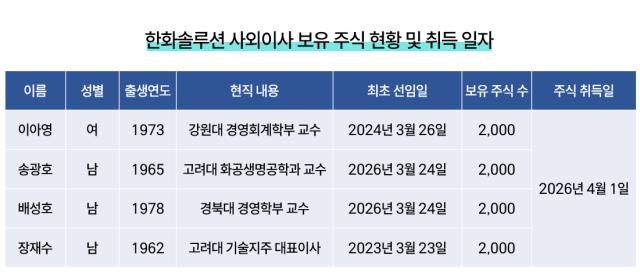 한화솔루션 이사회가 대규모 유상증자를 결의한 직후 사외이사 전원이 일제히 자사주 매입에 나서면서 시장의 시선이 쏠리고 있다. 이사회가 유상증자 정당성을 둘러싼 논란을 의식해 책임경영 신호를 보냈다는 해석이 나오는 한편 감시자 역할을 맡은 사외이사가 이해관계자 중 하나로 편입되는 것 아니냐는 지적도 동시에 제기된다. 시장에서는 주주 설득을 위해 사외이사가 나